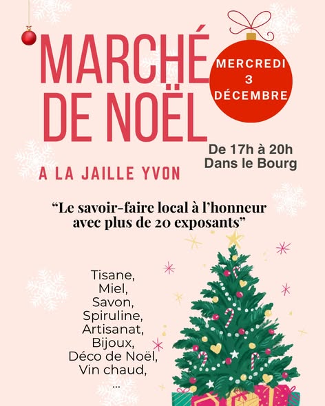 – le 3 au marché de Noël de la Jaille-Yvon de 17h à 20h,